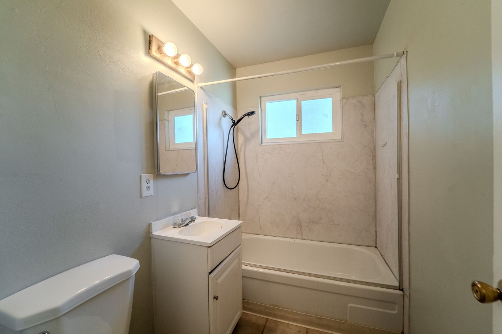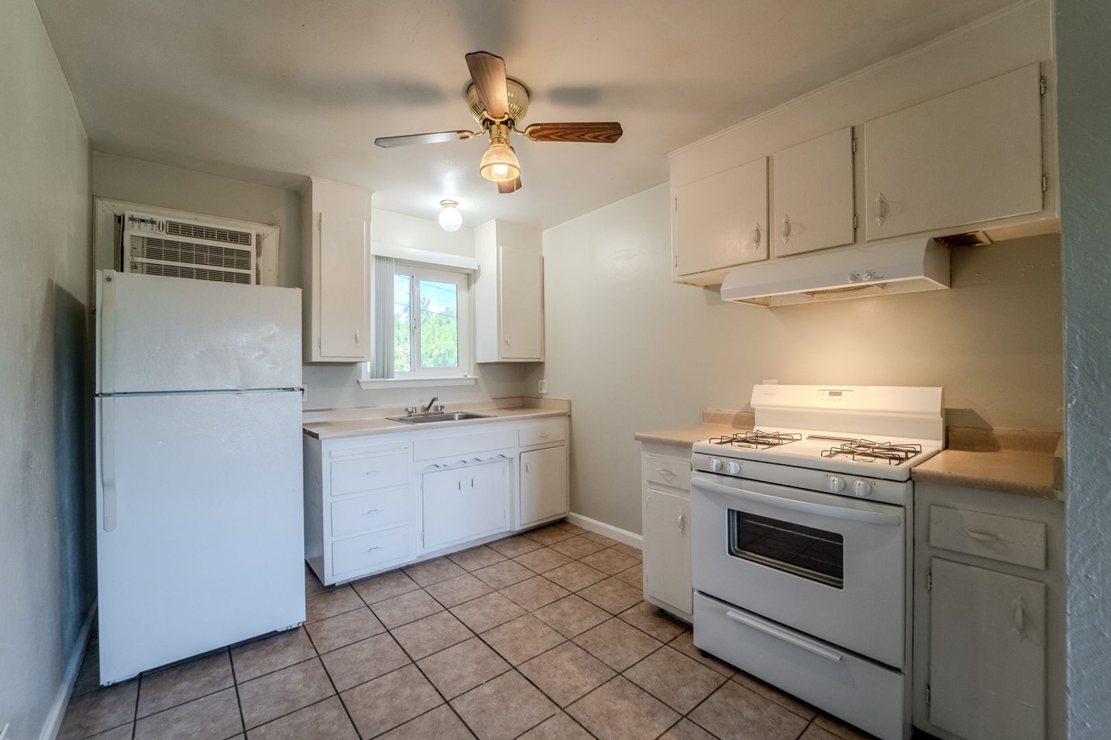 This is a 2 bedroom 1 bath downstairs unit that includes a range, refrigerator, microwave and on-site laundry.  Water/sewer, garbage service and pest control are included in the rent.