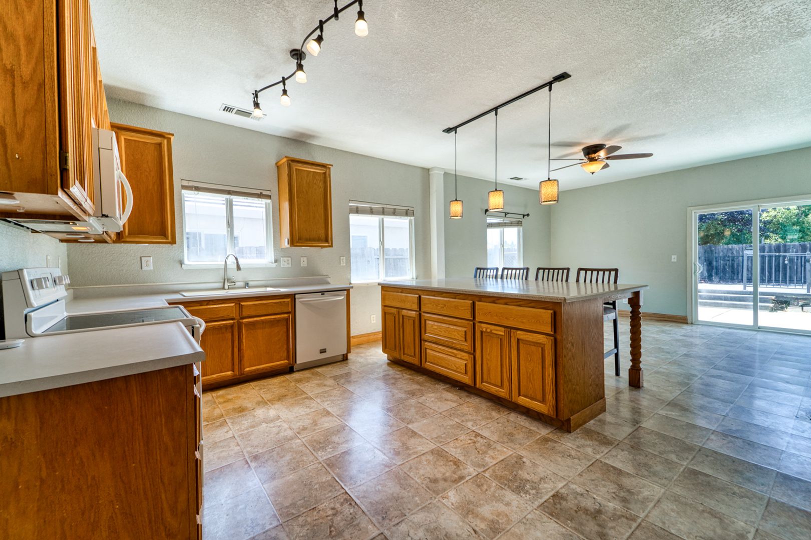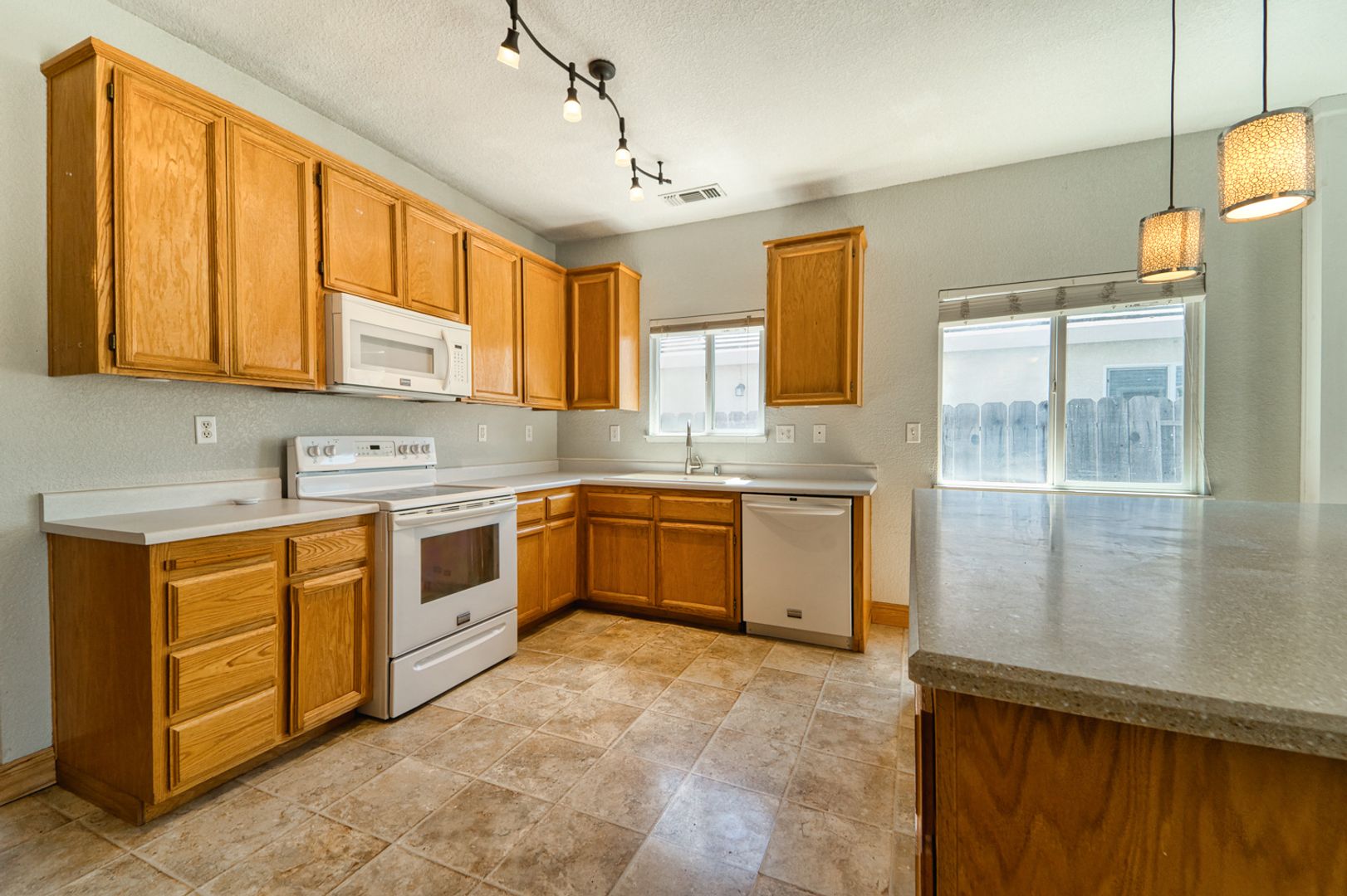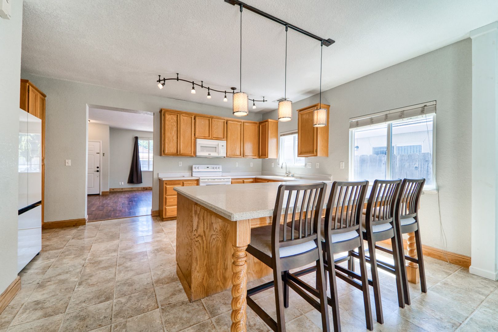 This beautiful 3-bedroom, 2-bathroom home, built in 2004, offers 1,542 square feet of comfortable living space. Step inside to find an inviting open layout featuring an island bar with 4 stools, perfect for entertaining. The kitchen comes fully equipped with all white appliances, including a refrigerator, electric stove, and an extra refrigerator in the garage.