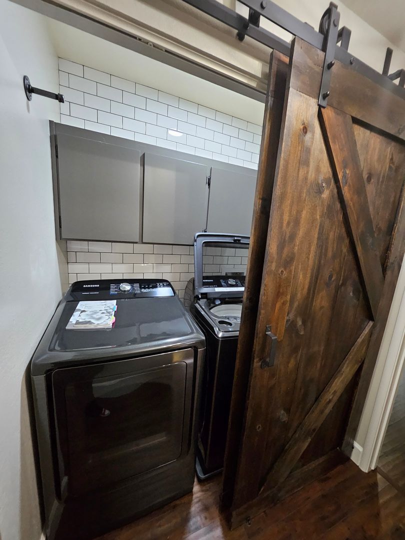 The kitchen is equipped with all stainless-steel appliances, including a gas stove and disposal, complemented by granite countertops for a modern, sophisticated touch. Enjoy the convenience of interior laundry with washer and dryer included, central heat & air, shutters, LVP flooring, and dual-pane windows.