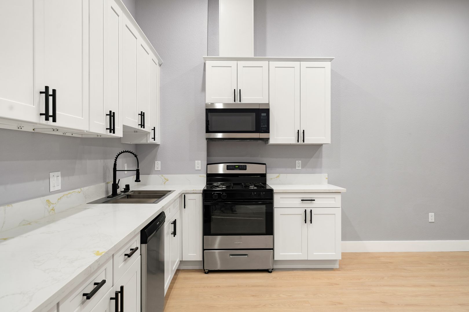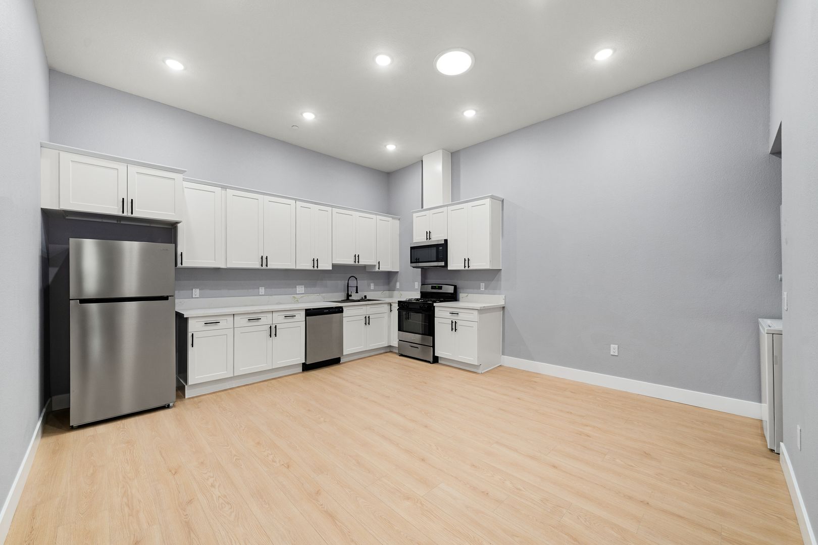 Welcome to this brand-new two-bedroom, one-bath residence designed with comfort and style in mind. Enjoy a modern kitchen featuring full-size stainless steel appliances, including a refrigerator, microwave, dishwasher, and gas stove, along with the convenience of an in-unit washer and dryer.